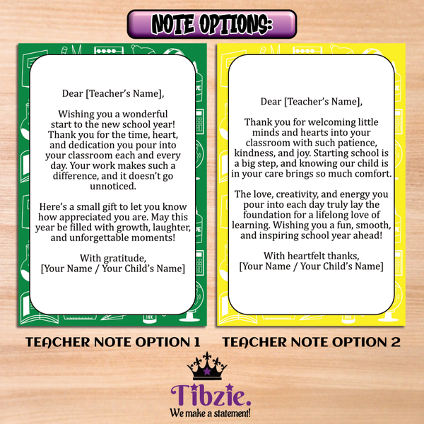 ๐ Personalized Note Card - Comes with a personalized 4 in. x 6 in. teacher note – 6 card designs available
