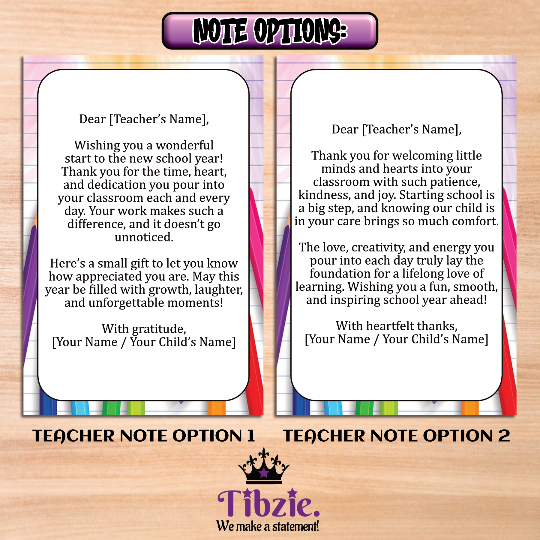 ๐ Personalized Note Card - Comes with a personalized 4 in. x 6 in. teacher note – 6 card designs available