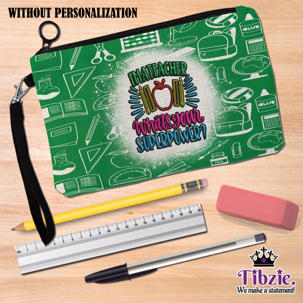 Personalized Teacher Linen Pouch – Double-Sided with School Supplies and Custom Note