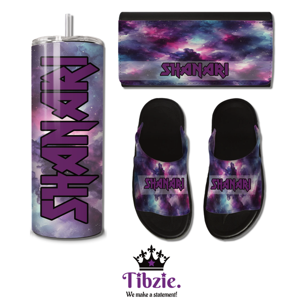 Matching Galaxy Tumbler, Purse And Slides Bundled Set
