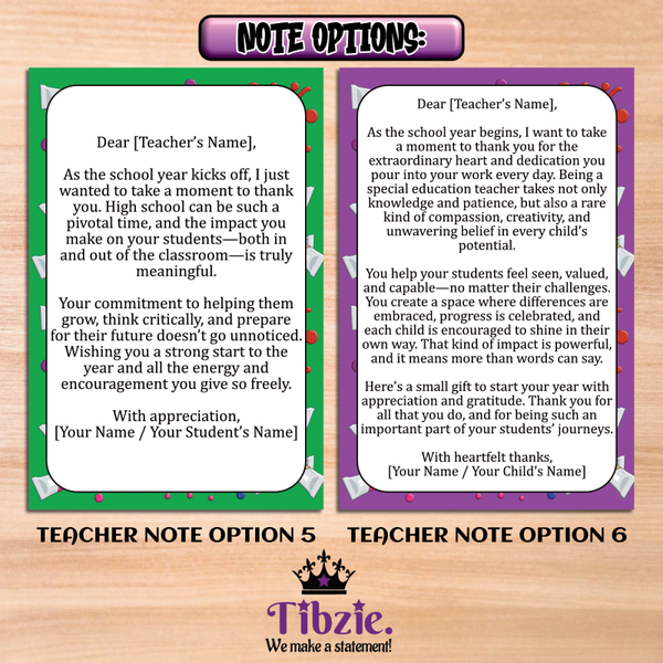 • 💌 Comes with a personalized 4 in. x 6 in. teacher note – 6 card designs available