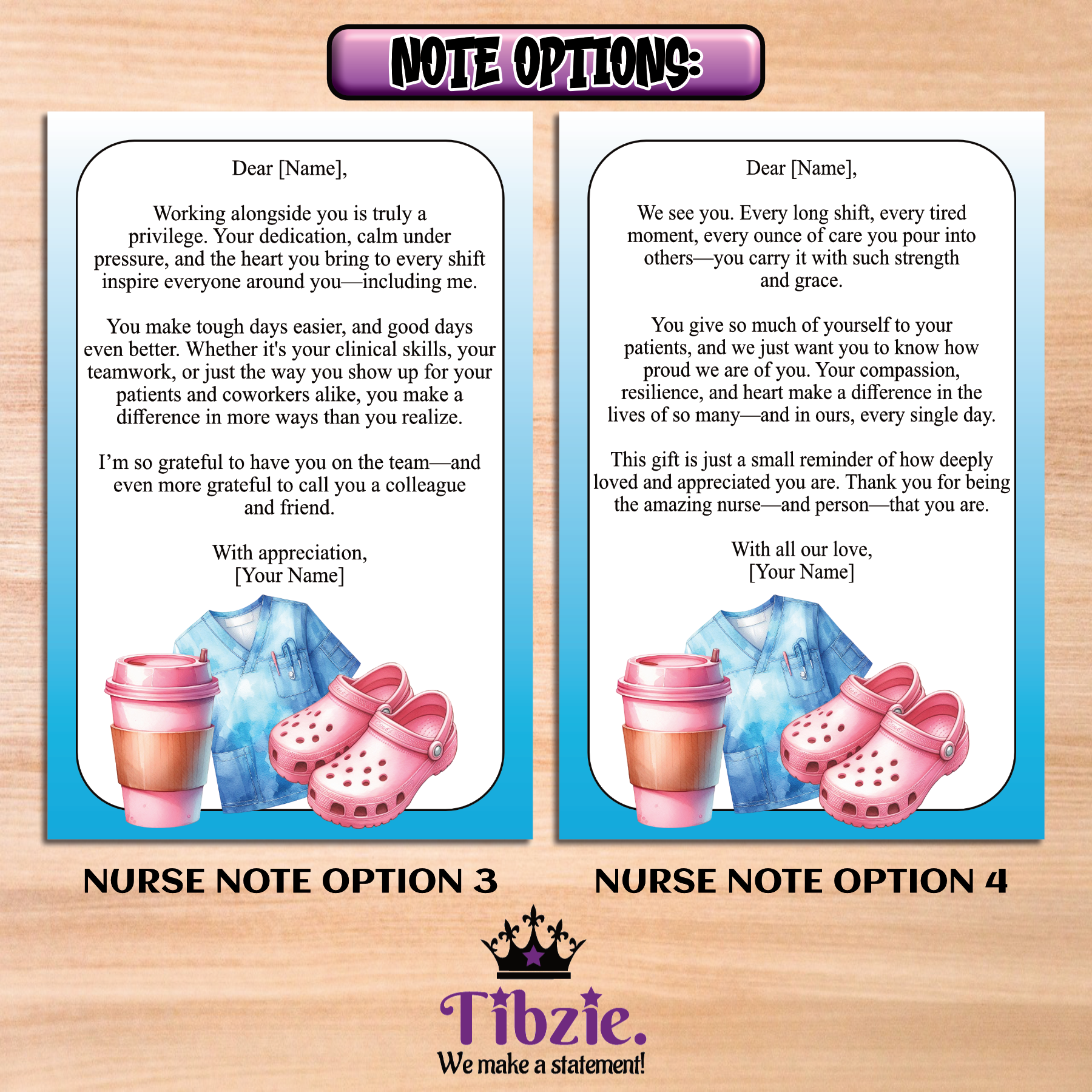 - 💌 Personalized Note Card - Comes with a personalized 4 in. x 6 in. nurse note – 6 card designs available
