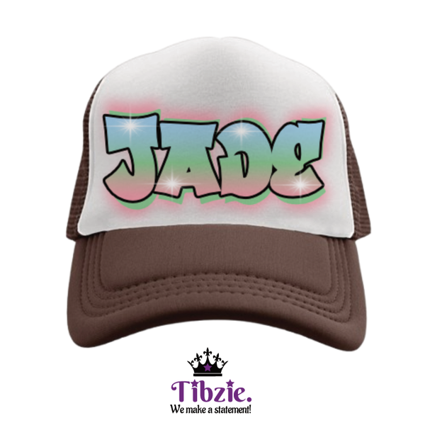 Please note that these hats are not actually airbrushed; it's just a print effect. This option allows you to choose only 3 main colors. For example, if you choose yellow, sky blue, and pink, the print effect will use yellow at the bottom, sky blue in the middle, and then pink at the top.