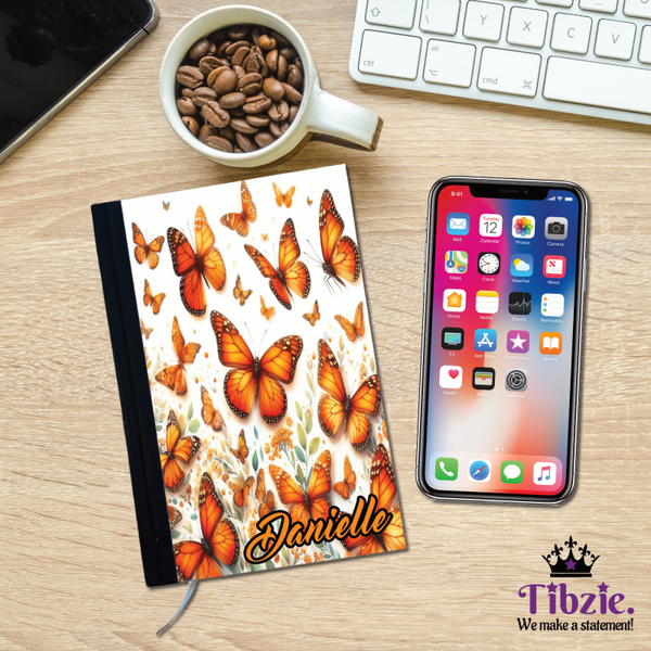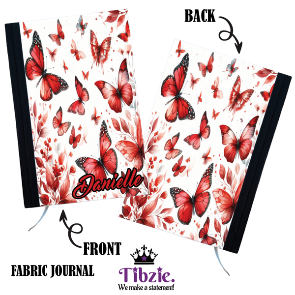 This butterfly print fabric journal makes a perfect gift! Get a personalized journal to write down those big ideas, deep thoughts, and all the great plans. Sized to fit in a tote or bag and great for everyday use. Made from durable fabric-covered hardcover so guaranteed to be long-lasting. You can choose to whether or not you want to personalize it. You can add a matching pen for an additional cost.