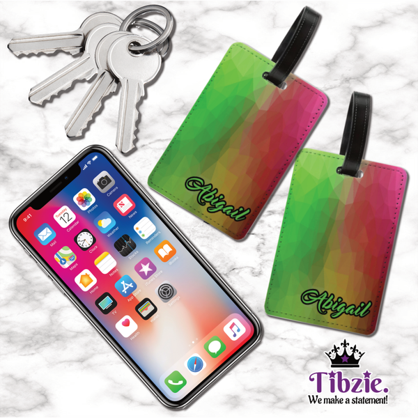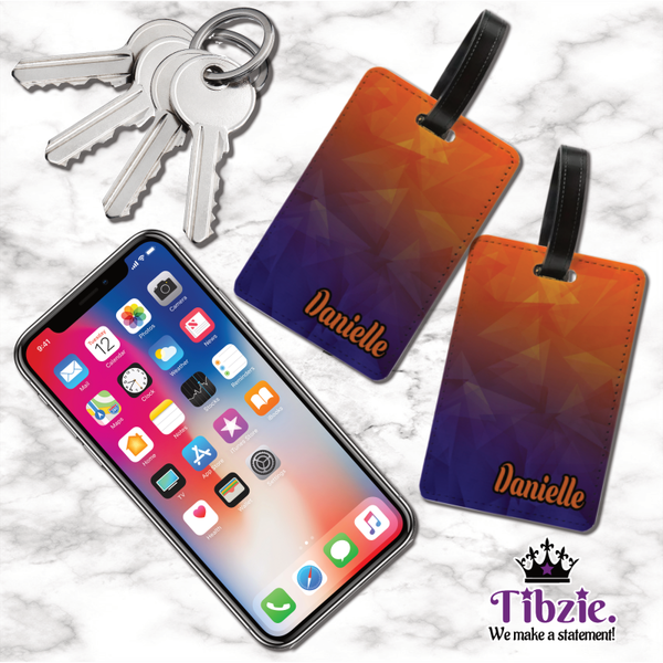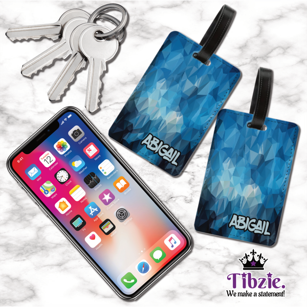 Travel in style with our Set of 2 Handmade Personalized Geometric Luggage Tags. These sleek, modern tags allow you to personalize each one with your name (choose from 12 font styles) and pair it with one of 12 eye-catching geometric print designs. Crafted for both style and durability, these tags are the perfect way to make your luggage stand out in any crowd.