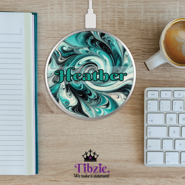 This wireless charger makes a perfect gift for a family member or friend, just anyone! Perfect for any occassion. You get to charge your Qi enabled devices without all the cables. You can choose whether or not to personalize it. If you choose not to personalize it then only the marble print will be printed on the wireless charger.