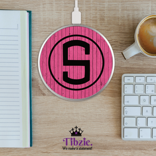 Wooden Print Initial Monogram Wireless Charger