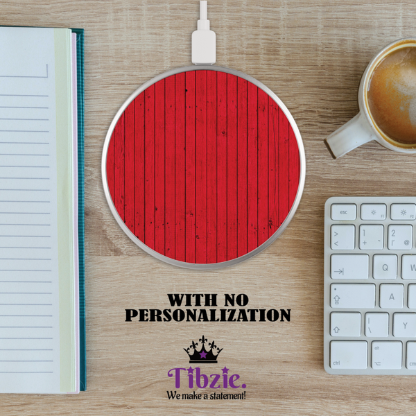 This wireless charger makes a perfect gift for a family member or friend, just anyone! Perfect for any occassion. You get to charge your Qi enabled devices without all the cables. You can choose whether or not to personalize it. If you choose not to personalize it then only the wooden print will be printed on the wireless charger.