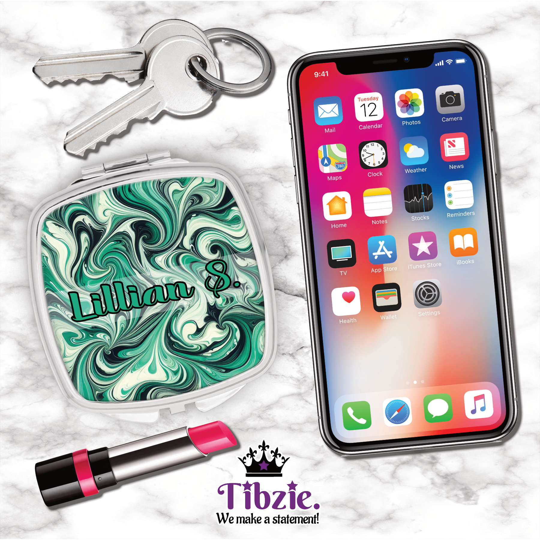 This marble print compact mirror makes a perfect gift! Made from metal so guaranteed to be long-lasting. Two types of mirrors inside: regular and magnifying. You can choose whether or not to personalize it. If you choose not to personalize it, then only the marble print will be on the mirror.