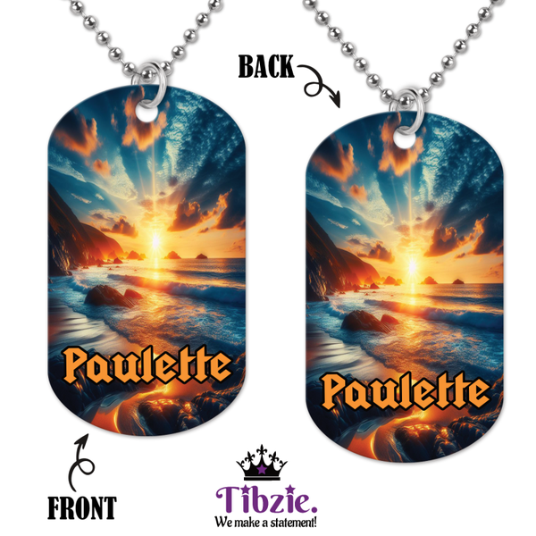 This sunset scene dog tag necklace makes a perfect gift! Made from stainless steel and aluminum so guaranteed to be long-lasting. The package includes ONE necklace that comes double-sided. You can choose not to personalize the necklace. If you choose not to personalize the necklace then only the sunset scene will be printed on both sides.