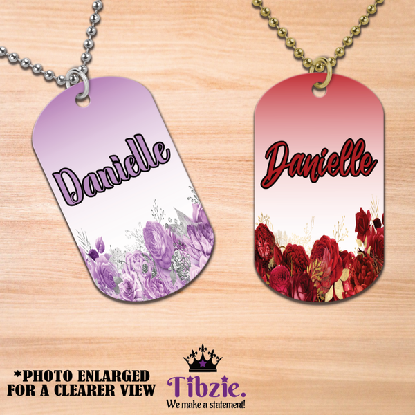This floral print dog tag necklace makes a perfect gift! Made from stainless steel and aluminum so guaranteed to be long-lasting. The package includes ONE necklace that comes double-sided. You can choose not to personalize the necklace. If you choose not to personalize the necklace then only the floral print will be printed on both sides.