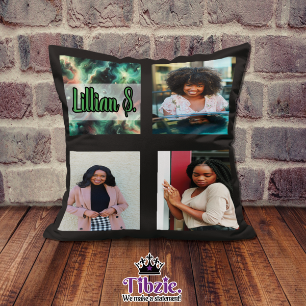 This galaxy print pillow is a great option add to your home décor. Spruce up the home or office with a lively, personalized pillow. This pillow comes with 4 panels (3 photos, 1 name).
