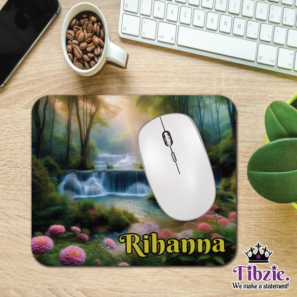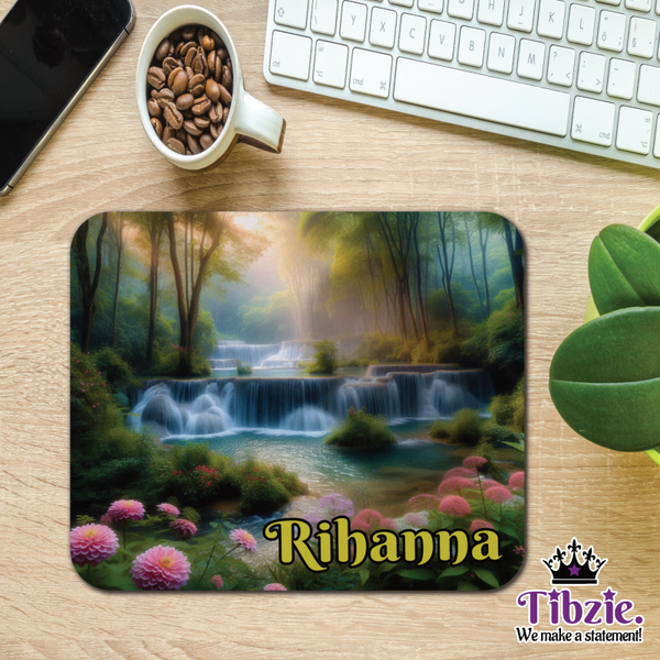 Personalized Waterfall Scene Mouse Pad – Handmade And Custom Name Design