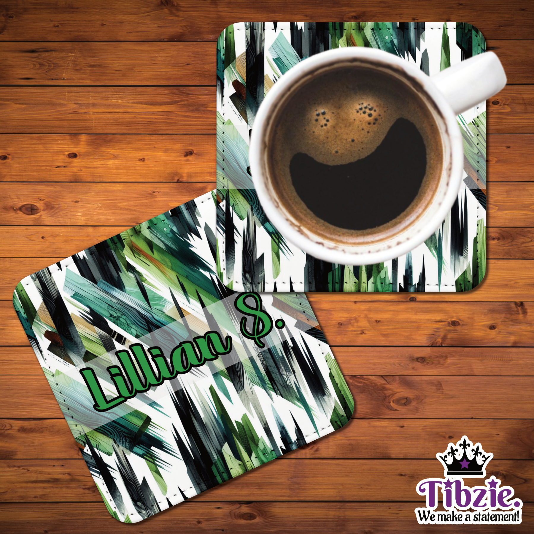 Personalized Brush Stroke Print PU Leather Coaster Set