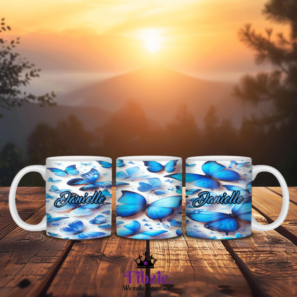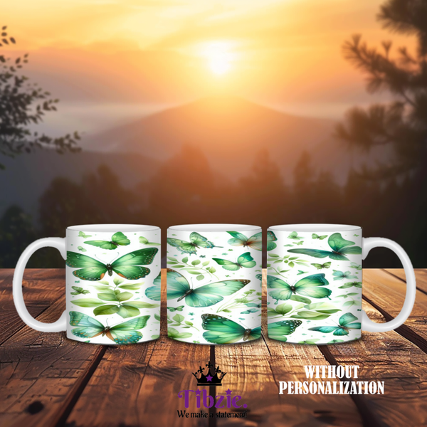 You can choose whether or not to personalize the mug. If you choose not to personalize the mug, then only the butterfly print will be on the mug.