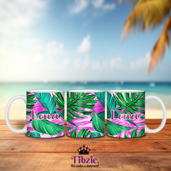 You can choose whether or not to personalize the mug. If you choose not to personalize the mug, then only the tropical print will be on the mug.