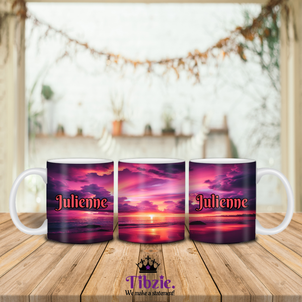 This ceramic mug makes a perfect gift for any occasion! A great accessory to enjoy a warm or cold beverage. Many sunset scene designs to choose from.