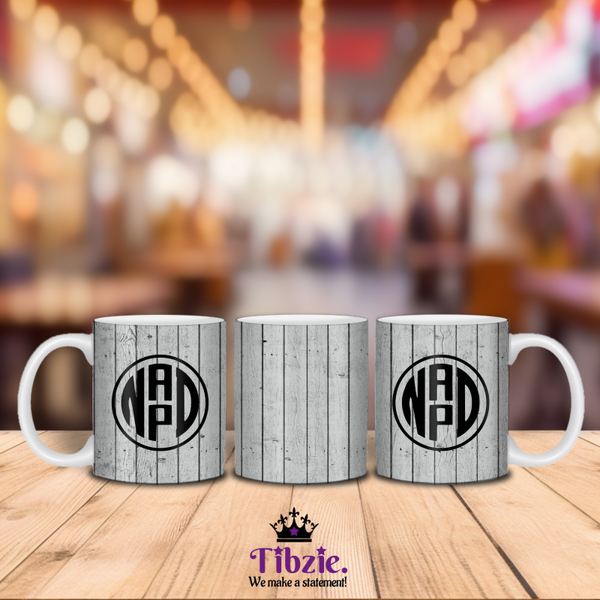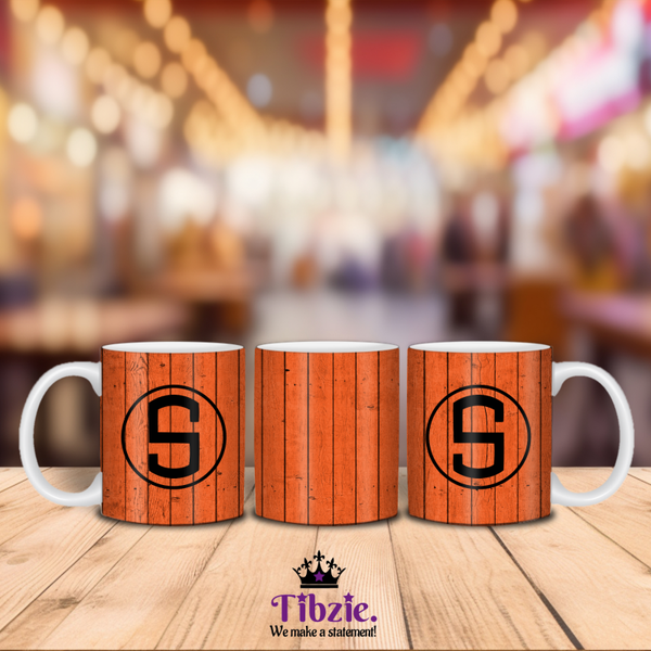 Wooden Print Initial Monogram Mug