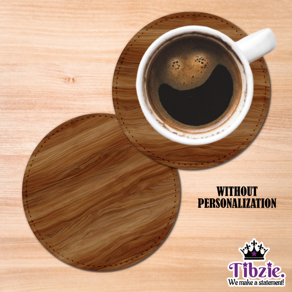 Personalized Carved Wood-Look PU Leather Coaster Set