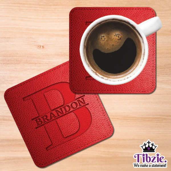 Elevate your home decor with the sophisticated look of our Personalized Carved-Look PU Leather Coaster Set. These coasters are designed to mimic the look of beautifully carved leather, providing a stylish and luxurious touch to your space. Crafted from durable PU leather, they come in sets of 2, 4, or 6 and are available in circle or square designs. Each coaster can be personalized with a monogram (1 initial and name), and you can choose from 10 rich leather color options. Perfect for protecting your furniture while adding a personalized flair to your home.