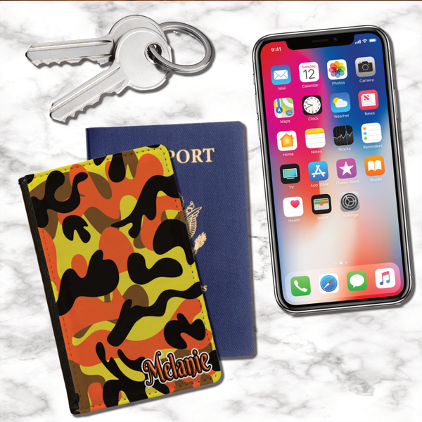 Stand out while blending in. Our Handmade Personalized Camo Passport Holder combines function, fashion, and a personal touch. Customize it with your name in one of 12 stylish font options, and choose from 10 unique camo color designs — from classic green to bold, modern tones. Perfect for adventurers, outdoor lovers, or anyone who likes to travel with an edge.