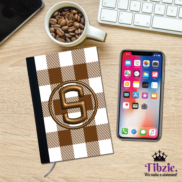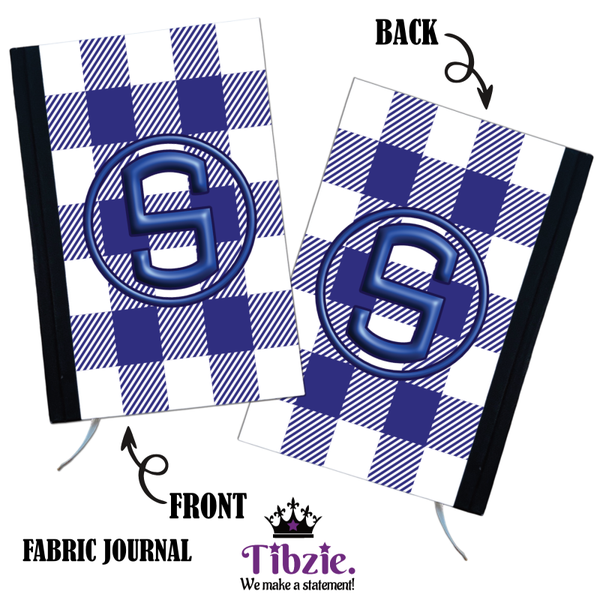 White Buffalo Plaid Print Initial Monogram Fabric Journal