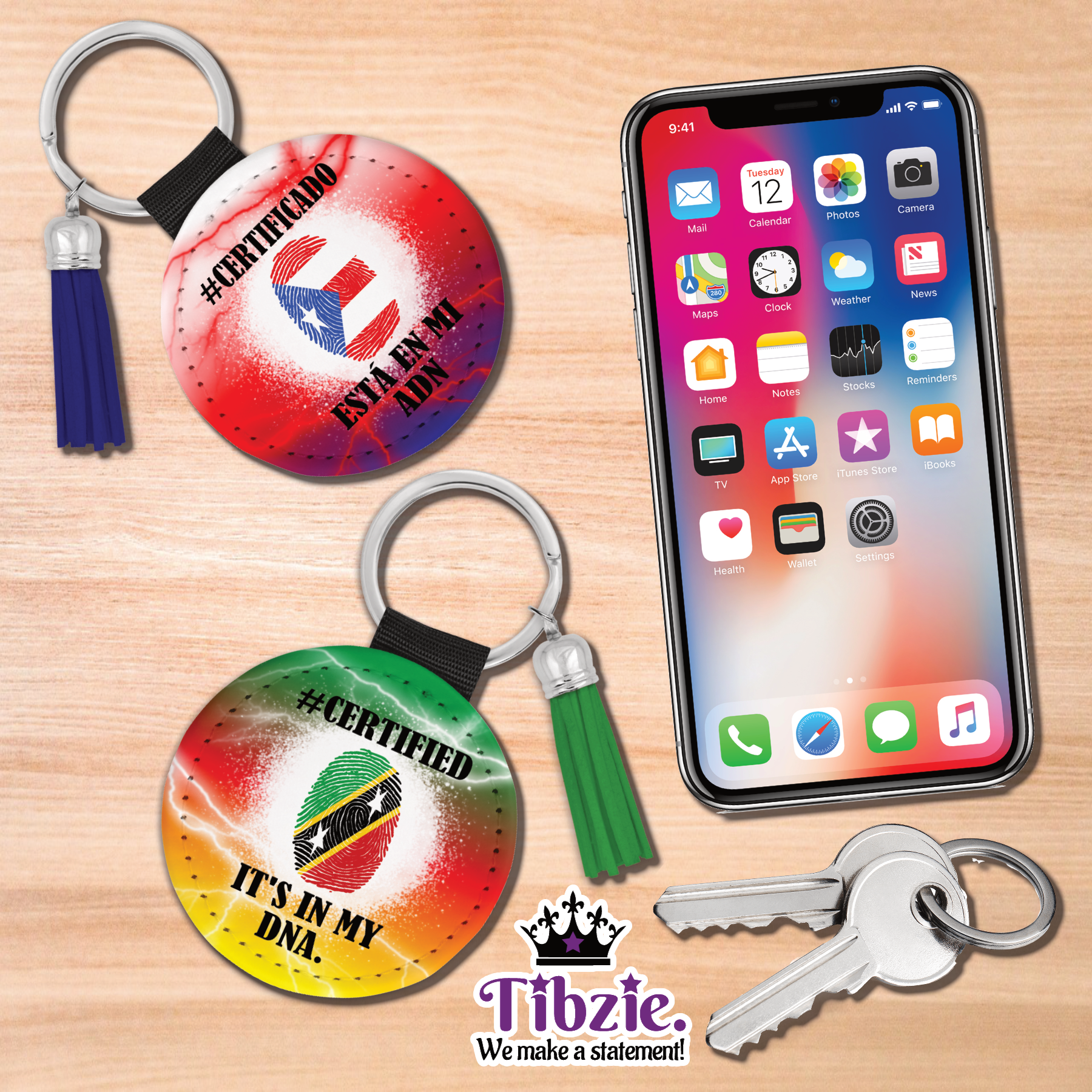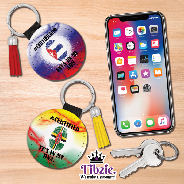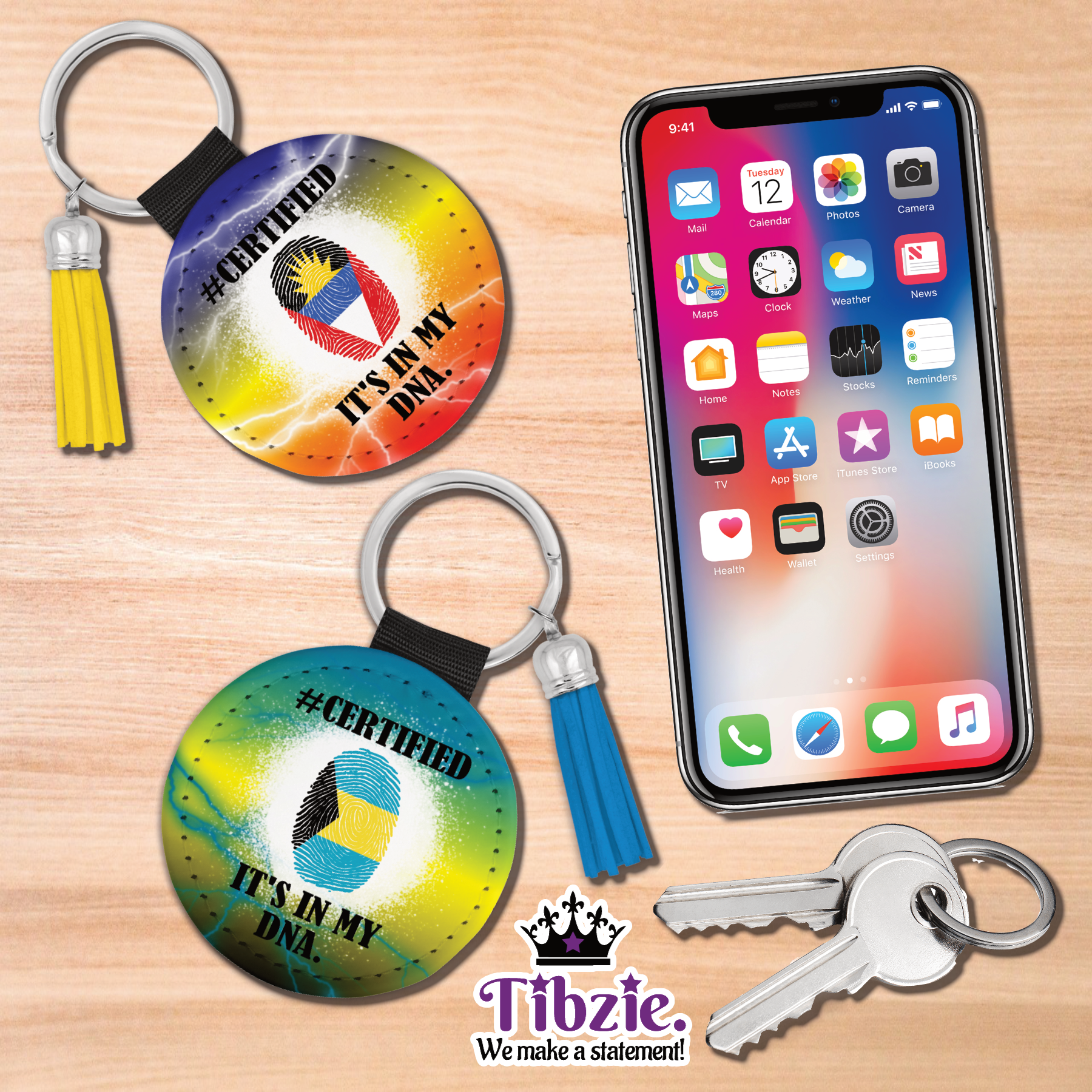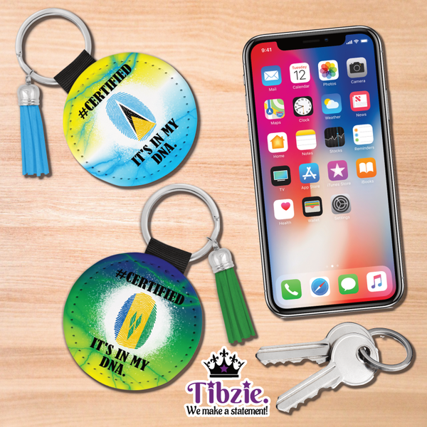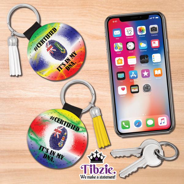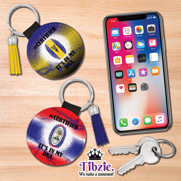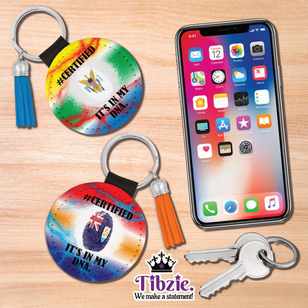 Celebrate your heritage with this handmade key ring that boldly showcases your Caribbean pride. Featuring a striking fingerprint design infused with the vibrant colors of your country’s flag and the words “It’s in my DNA,” this accessory is more than a key ring—it’s a powerful symbol of identity, culture, and connection. Stylish, durable, and full of meaning, it's the perfect everyday reminder of where you come from.